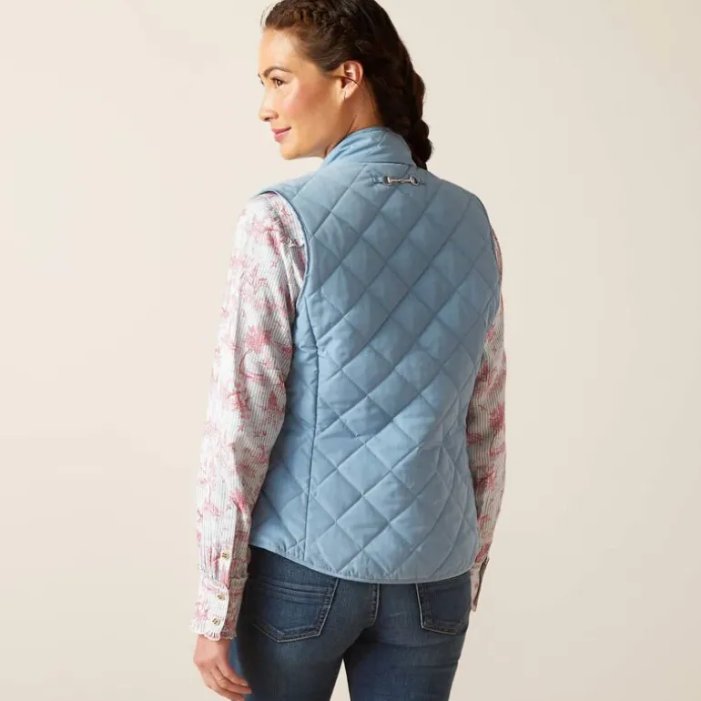 Embrace the perfect blend of style and functionality with the Ariat Women’s Woodside Vest. This beautifully designed vest is ideal for layering, ensuring you stay warm without compromising your fashionable appearance. The vest features a stunning diamond quilted exterior, complemented by a whimsical print lining and charming horse-bit detailing that speaks to the equestrian spirit.
