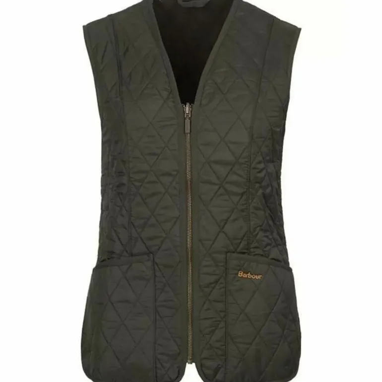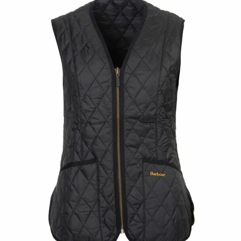 Featuring an exposed zip front and two patch pockets, the liner is complete with the Barbour logo embroidered on the left pockets which completes this elegant and versatile piece.