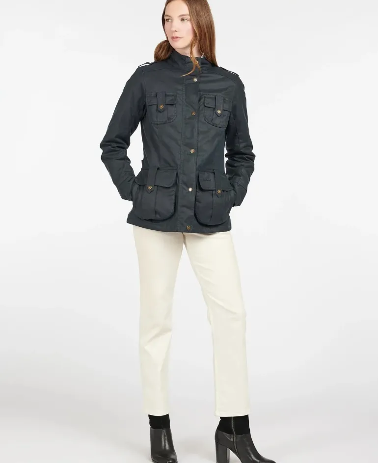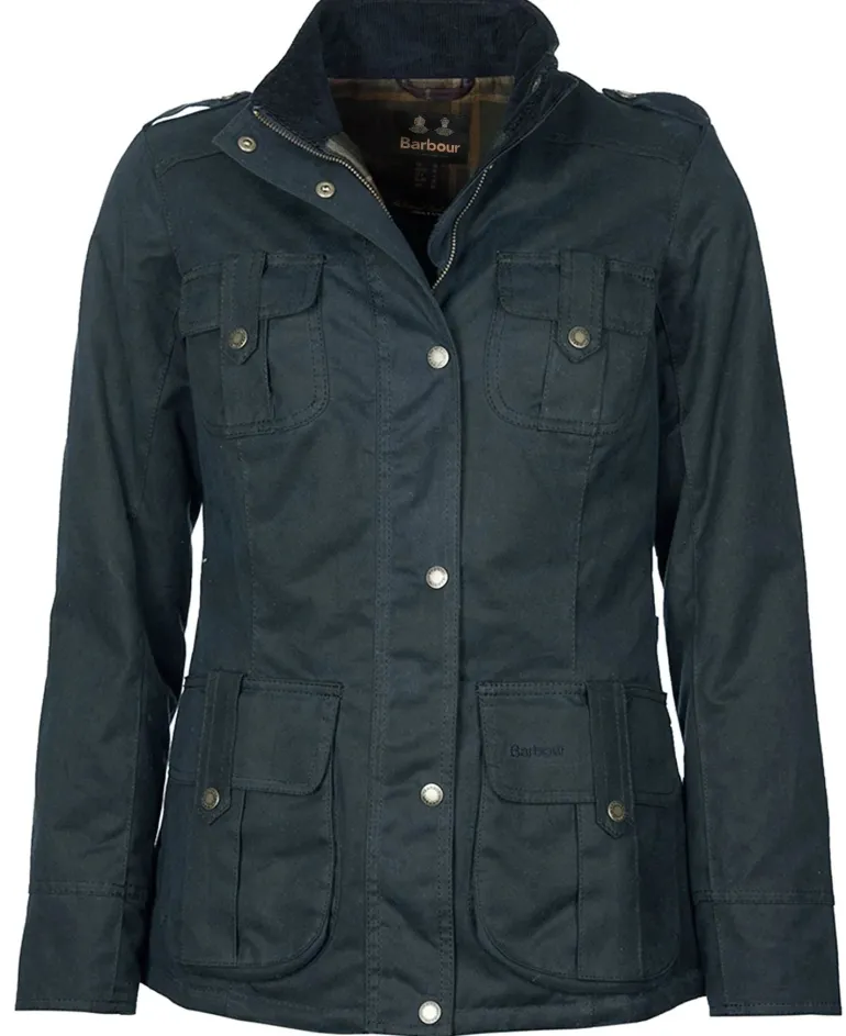 An update on the classic Defence waxed jacket, this version is delivered in a heavier-weight waxed cotton with a warm lining to help protect against the colder days. Styled with shoulder epaulettes and four stud-close frontal utility pockets, it’s finished with a lining in signature Barbour tartan.
