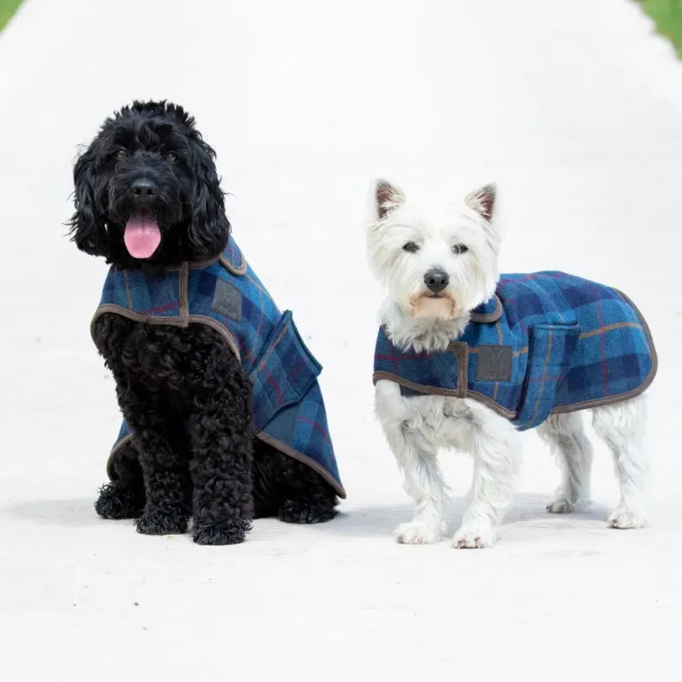 Classic countryside style for man’s best friend, a smart tweed coat for the town or country dog. Harness compatible and lined with fleece for ultra-cosy comfort. Touch close chest fastening and belly flap, elastic hind leg straps, fold back collar.