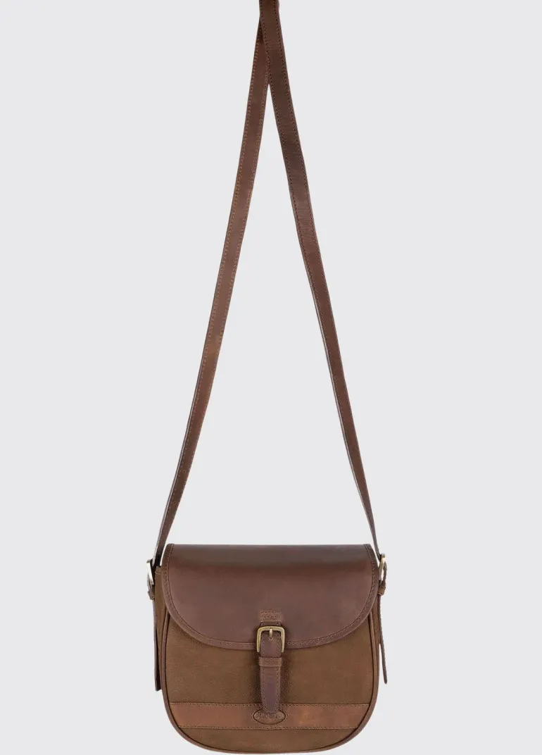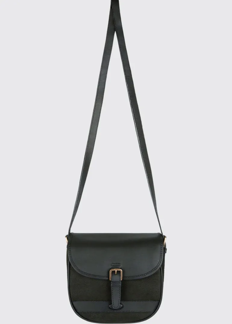 The Clara saddle bag comes both in a full leather style and fabric mix too, both of which team brilliantly with Dubarry tweeds for an eye-catching country look. It has an internal zip pocket for security, full lining and it closes with a simple leather flap and studded buckle over the top. Just the right size for your essentials – purse, phone, keys and quite possibly your race card too.