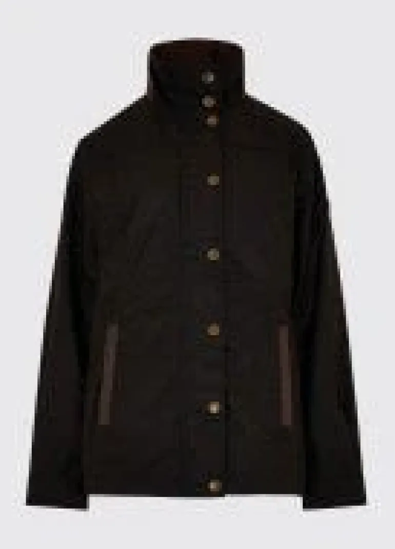 The waxed cotton Mountrath is a warm winter jacket with PrimaLoft® fill and water repellent finish. Leather trim and branded stud poppers add to the polish while the stud-fastened faux suede collar and gently tailored shape adds a slick urban flair to this comfortable country style.