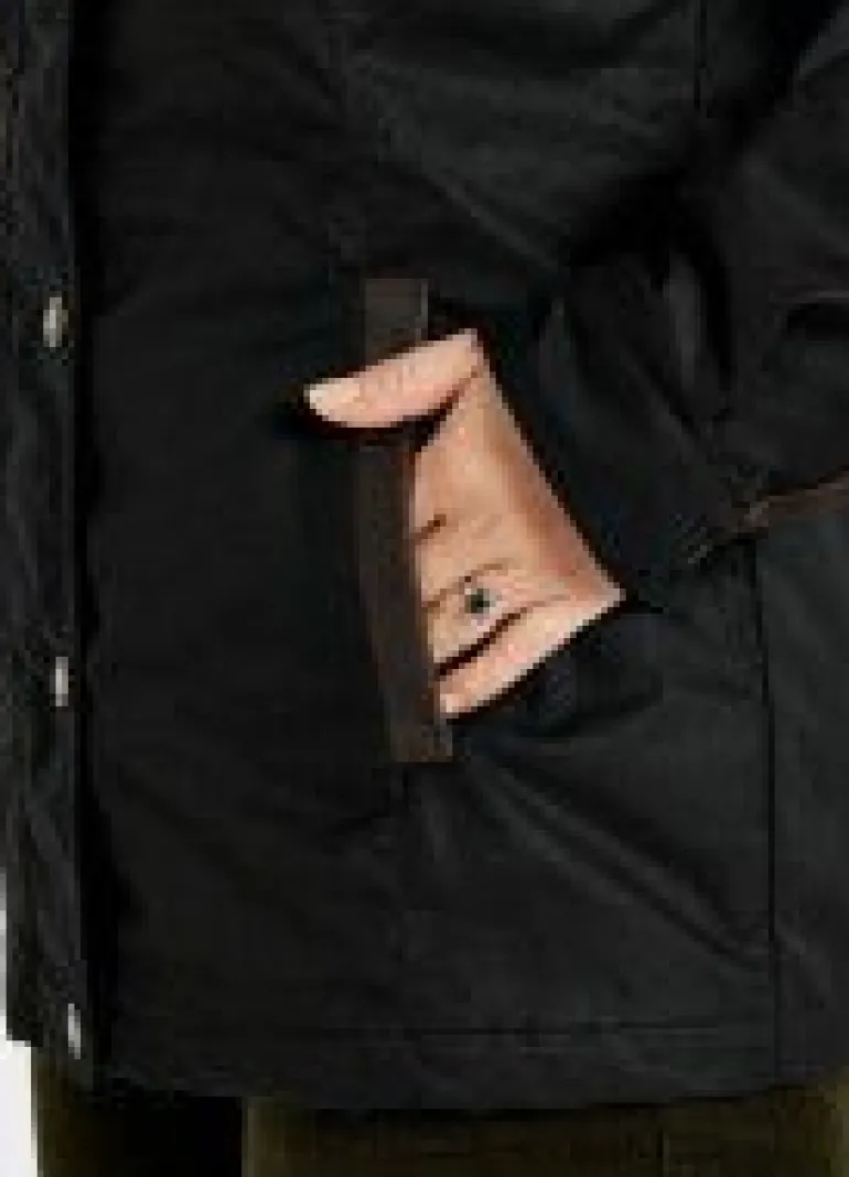 - Waxed, water repellent fabric, with dry finish and PrimaLoft® filling for warmth