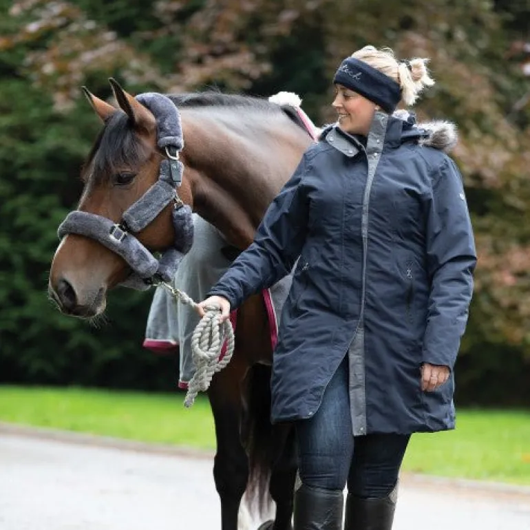 The ultimate winter coat for all equestrian and country activities! Timeless, stylish coat, with padded inner for two looks in one! Quality waterproof, windproof outer shell with taped seams and detachable faux fur trim to hood. The hood is also detachable with a Velcro adjuster. Padded inner recycled faux down fill, giving you complete comfort in the worst weather, with a faux fur lining, so a truly cosy feel! This coat is perfect for horse riders, country walkers, trainers, dog walking and around town. Other features include a back gusset with opening – allowing you to ride comfortably in a saddle, waterproof zip pockets with thermal lining, Equetech snaffle zip pullers, Equetech metal badge and cuffs with inner storm cuffs.