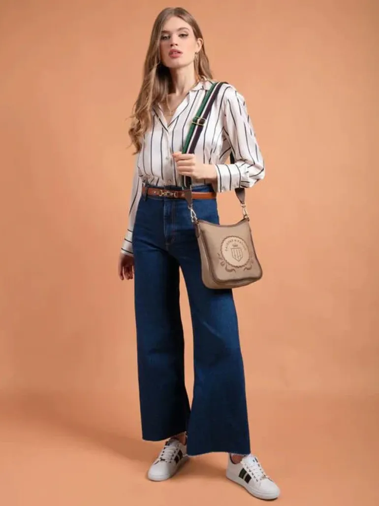 Our new Boston collection brings a pop of colour to summer days with plum, cream and forest green striped webbing that evokes sunny weekends watching Wimbledon and getting out into nature. Based on our iconic Alexandra, the Boston Trainer is a laidback choice for sidling through summer. Pair with a floaty maxi dress for festivals or your shortest shorts for beach or boardwalk. Just add a Boston Bag!