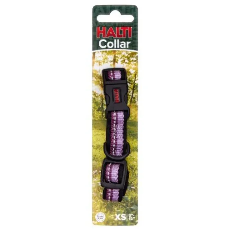 The Halti Collar incorporates a colorful two-tone design with a strong webbing outer and a soft yet durable easy-clean neoprene lining, ensuring comfort for the dog. With reflective 3M Scotchlite strip for walking visibility in all conditions and high grade nylon webbing for strength and durability, and a hard-wearing metal ‘D’ ring for essential name and microchip tags.