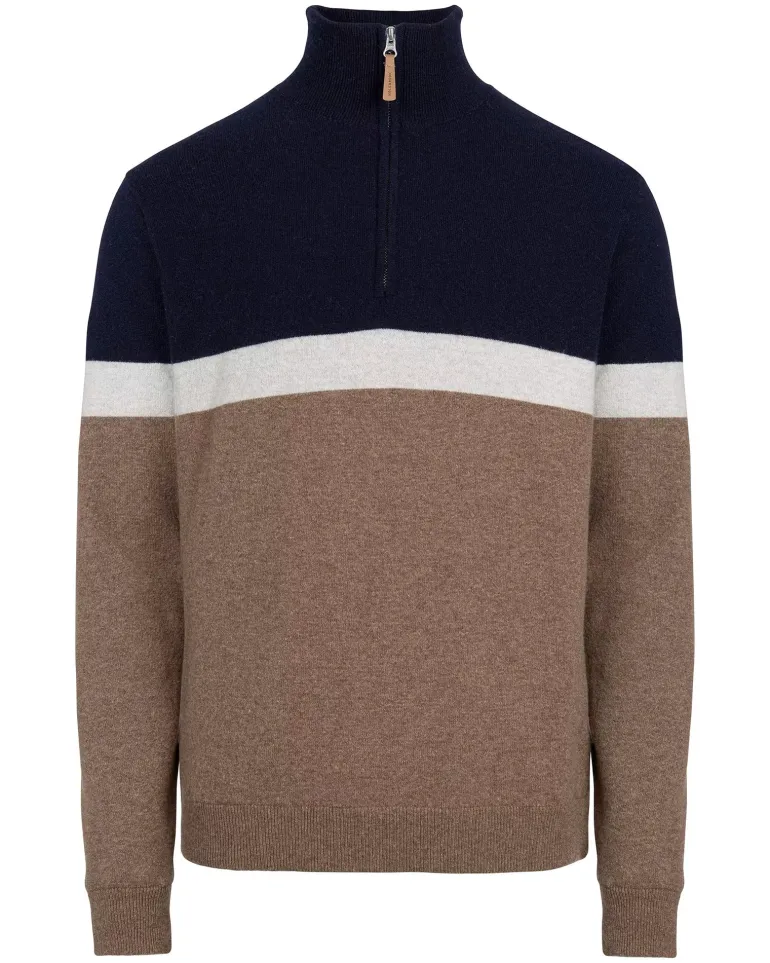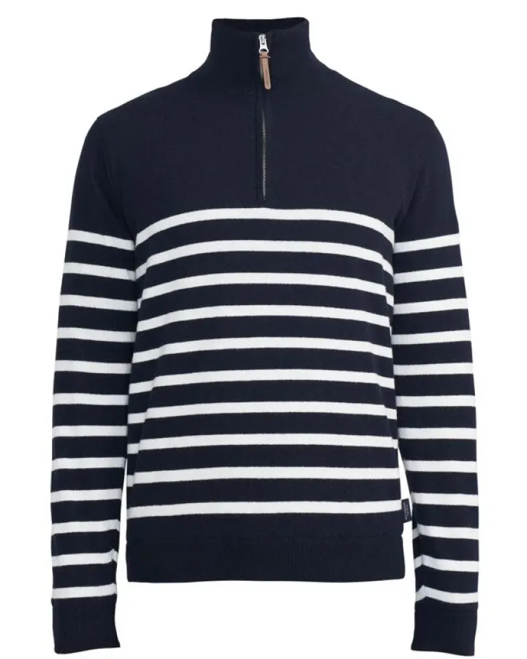 Knitted windproof sweater in 100% soft merino wool. Rib knit collar with zip and rib knitted endings.