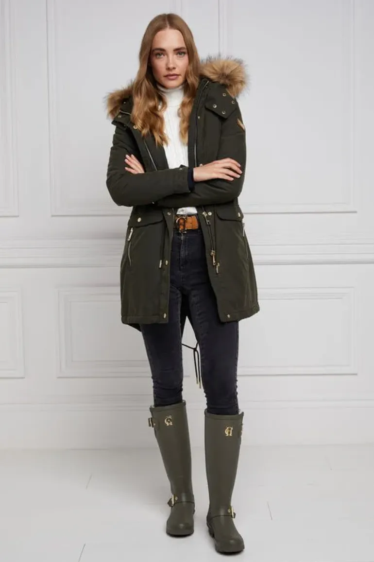 The superior full thermal sherpa lining is engineered to keep your feet and lower legs insulated, cosy and warm at all times. This eye-catching boot is adorned with iconic HC hardware and strapping details. Complete with side gusset allowing for an adjustable leg width ensuring our wellington boot fits across a range of calf sizes comfortably. Packed and travelled within a large HC signature green and gold boot box.