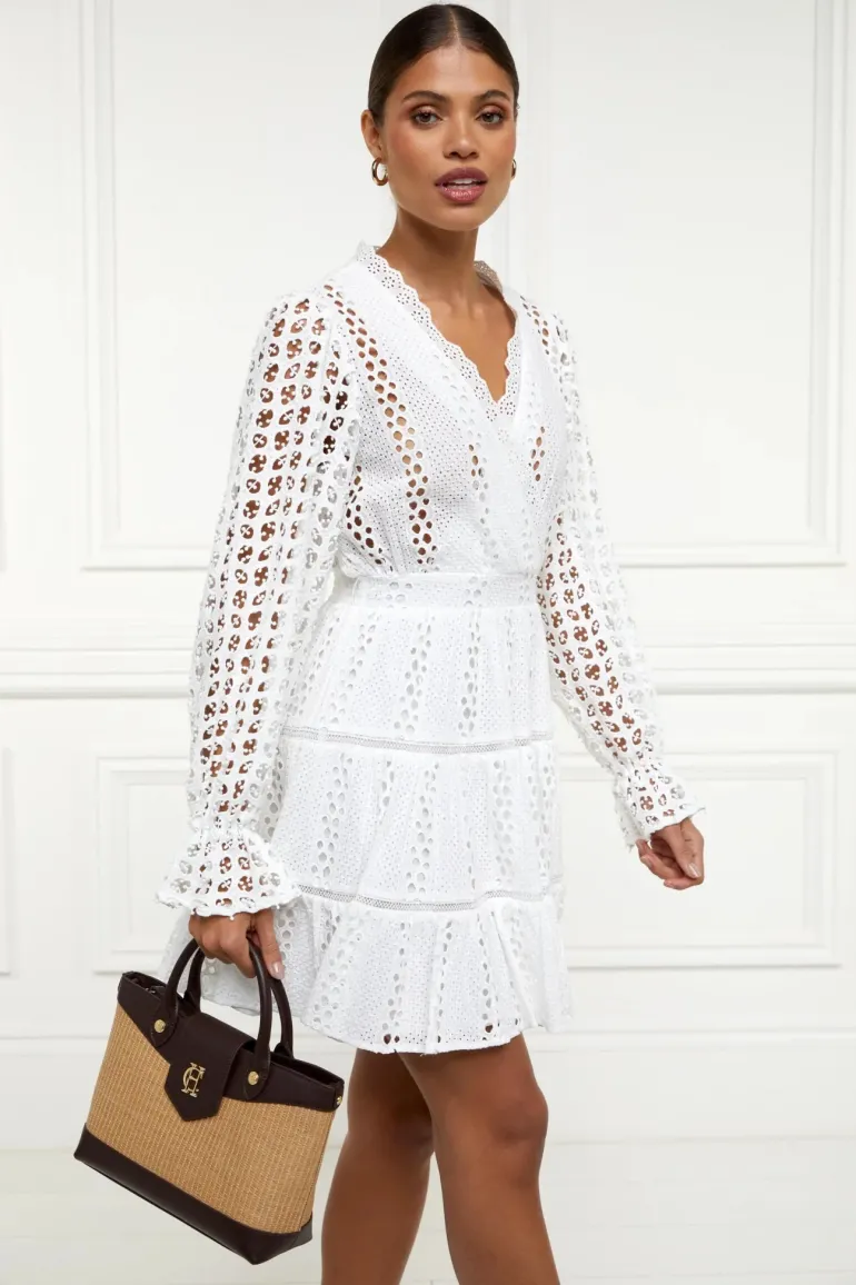 A classic woven basket bag with reinforced leather trim detailing, this piece has been designed to become a must have accessory in your summer wardrobe. Designed with leather top handles and elegant flap closure with a gold HC plaque, the detachable long strap ensures this piece is practical and comfortable to wear.