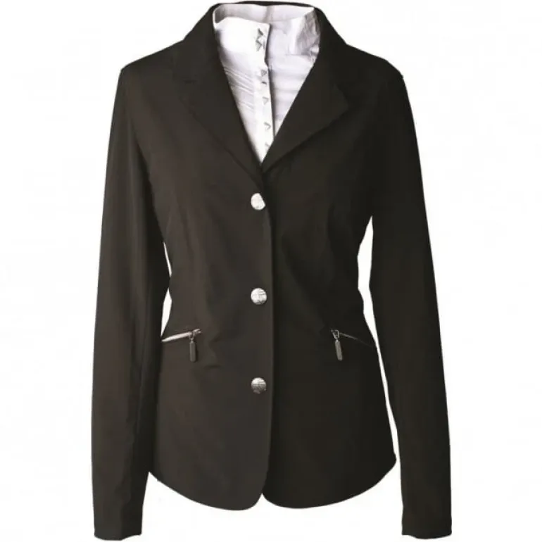 The Horseware Ladies Competition Jacket is a lightweight, stretchy softshell jacket perfect for show jumping and other competition use. This softshell show jacket is waterproof to keep you dry if caught in a shower and super stretchy to ensure your movement isn’t inhibited when riding. This slim fit jacket has an elegant shape with a single rear vent at the back and flattering seam detailing. The buttons on the Horseware Ladies Competition Jacket are embellished with Horseware branding and the Horseware Competition Shirt shown in the image is available to purchase seperately.