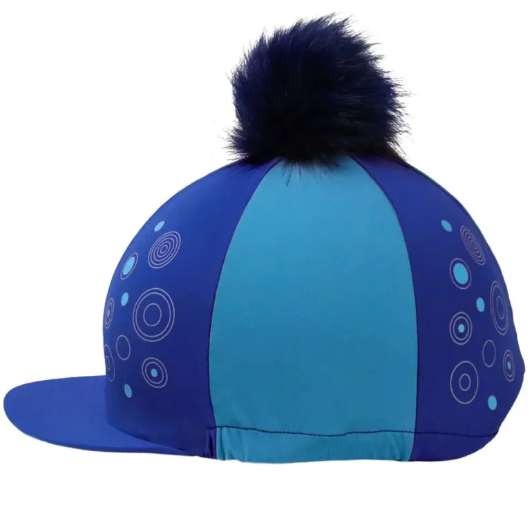 This two tone hat cover with co ordinating detachable faux fur bobble features a chunky circle pattern and stiffened peak. Made from stretchy lycra to allow it to fit all hat sizes. Matching base layer and riding tights available.