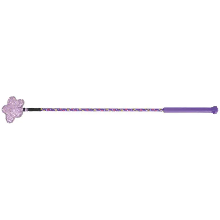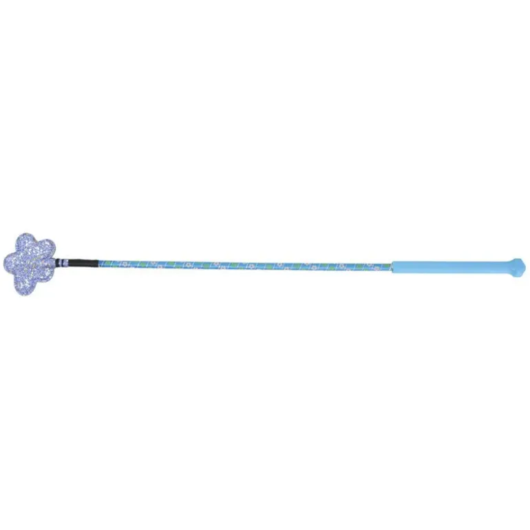 The flower print design sits against the base colour, broken up by a silver glitter wrap on the body of the whip. The glittery flower shaped end matches the solid coloured handle. A fantastic choice for everyday riding.