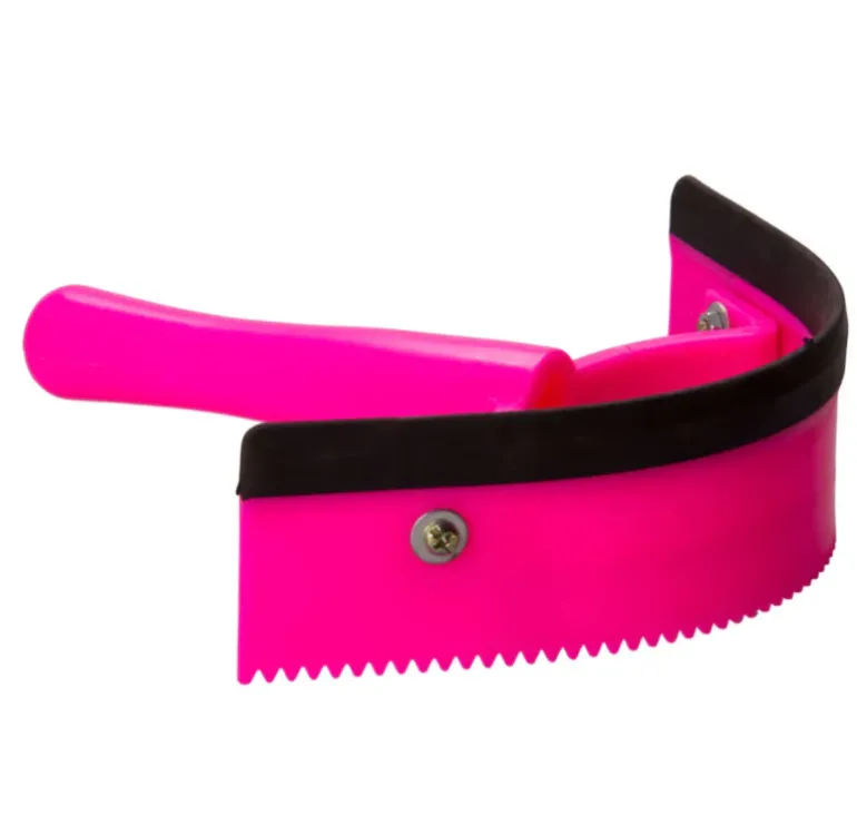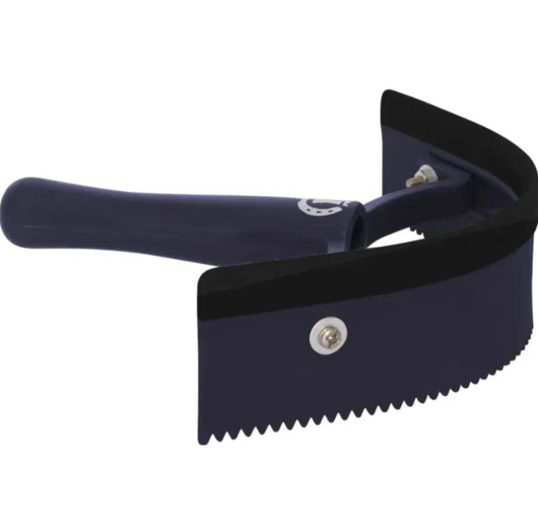 Ergonomic half round sweatscraper. This product is not only stylish it is also specially made to make sure that the handle lies comfortably in your hand. The special gripped handle also helps your blood circulation to flow whilst grooming.