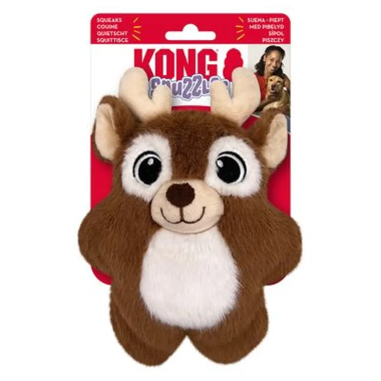 The KONGĀ® Snuzzles Reindeer is plump and full of fun with a full body squeaker that calls out with a long, loud squeak. The uber plush exterior continues the delight while satisfying instinctual chewing behaviour. The dense mouthfeel continues the engagement by rewarding appropriate play with every bite. Ideal for indoor fun!