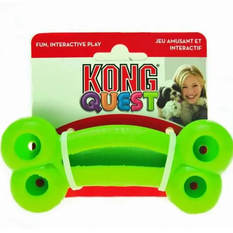Made using a brightly coloured, flexible material, the KONG Quest Bone Large delivers a new challenge.Great for light to moderate chewers and can be stuffed with your dog’s favourite treats or kibble to simulate natural foraging behaviours.