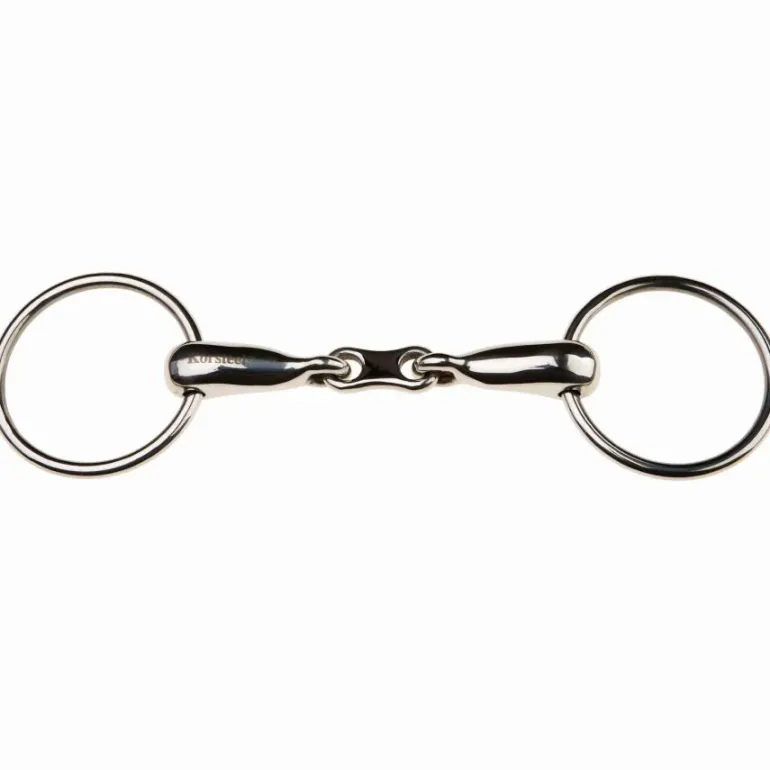 A mobile bit which discourages fixing and leaning on the forehand. Mild bit designed to allow the rider to have an independent control of each side of the mouth, preferable to horses with less palate clearance. Slightly thicker in diameter which helps to distribute pressure over a larger area. The double jointed mouthpiece avoids the nutcracker action of a single joint.