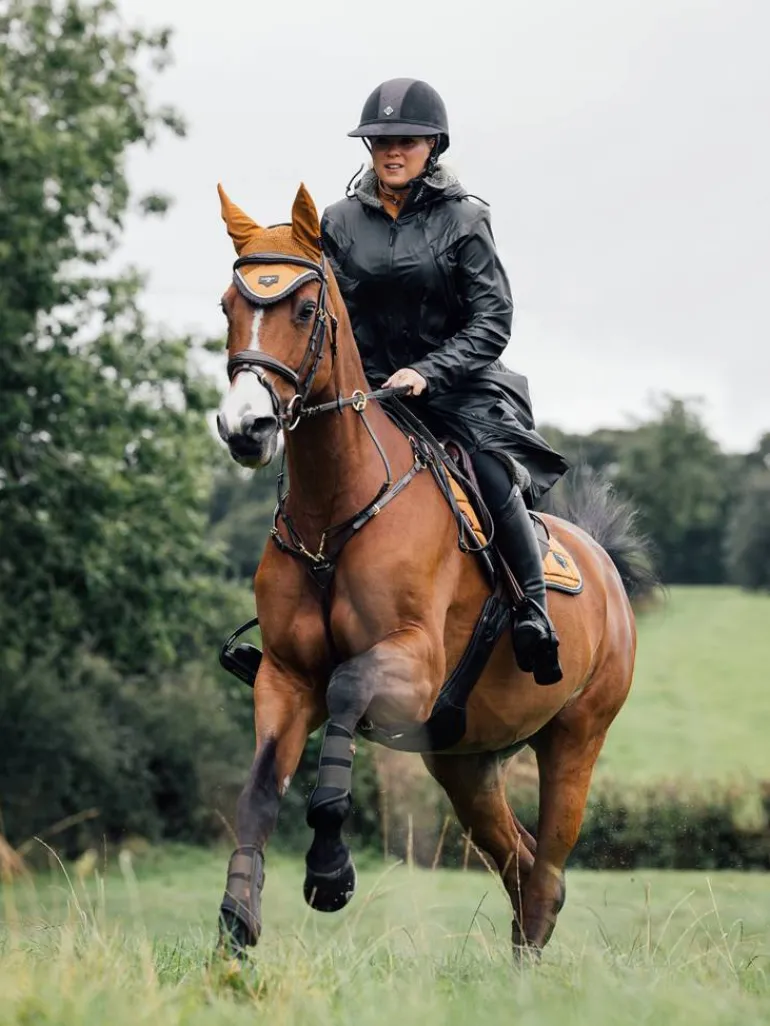 A two-way front zip gives you flexibility, while the back hem vent allows for fitting over the saddle. The rubberised outer fabric means stains simply slide or easily wipe off – an ideal feature for life with horses.