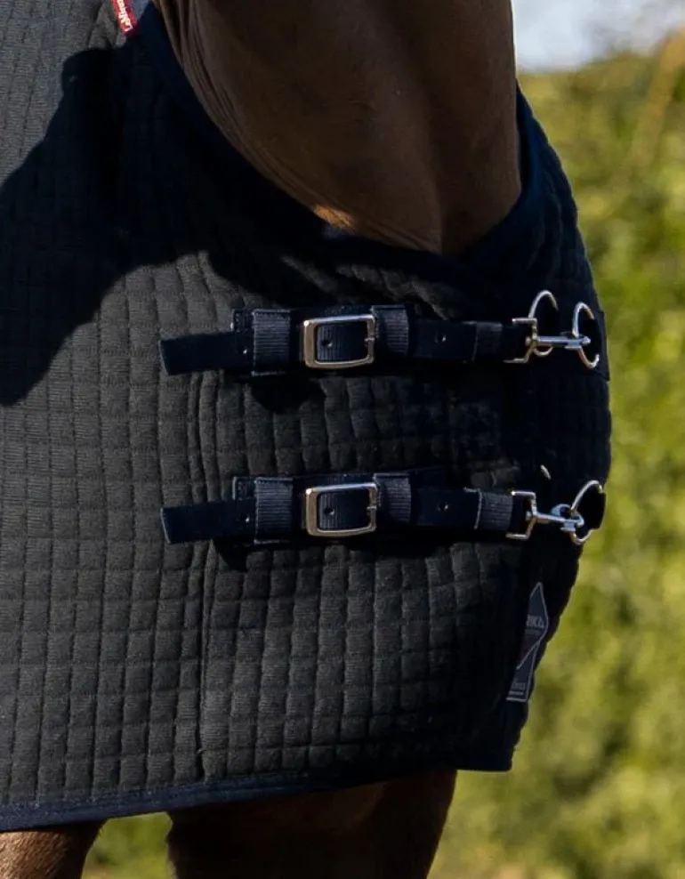 Please note this rug is not designed as a outer stable rug. Horses should not be left for extended periods in the stable or over-night. The outer fabric is a breathable wicking material and not a rip-stop denier, therefore it can snag. However, this rug can be used as an under rug. Due to the technical nature of the fabrics in this rug, we recommend that these rugs should be machine washed in a large wash bag to protect the rug from any rough edges within the washing machine.