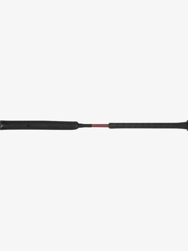 A stylish jumping and general purpose whip with kind, shock absorbing gel end pad covered with soft PU leather. A generous grooved rubber grip handle offers great grip whatever the weather. The whip shaft is counter-balanced making it comfortable to hold and use.