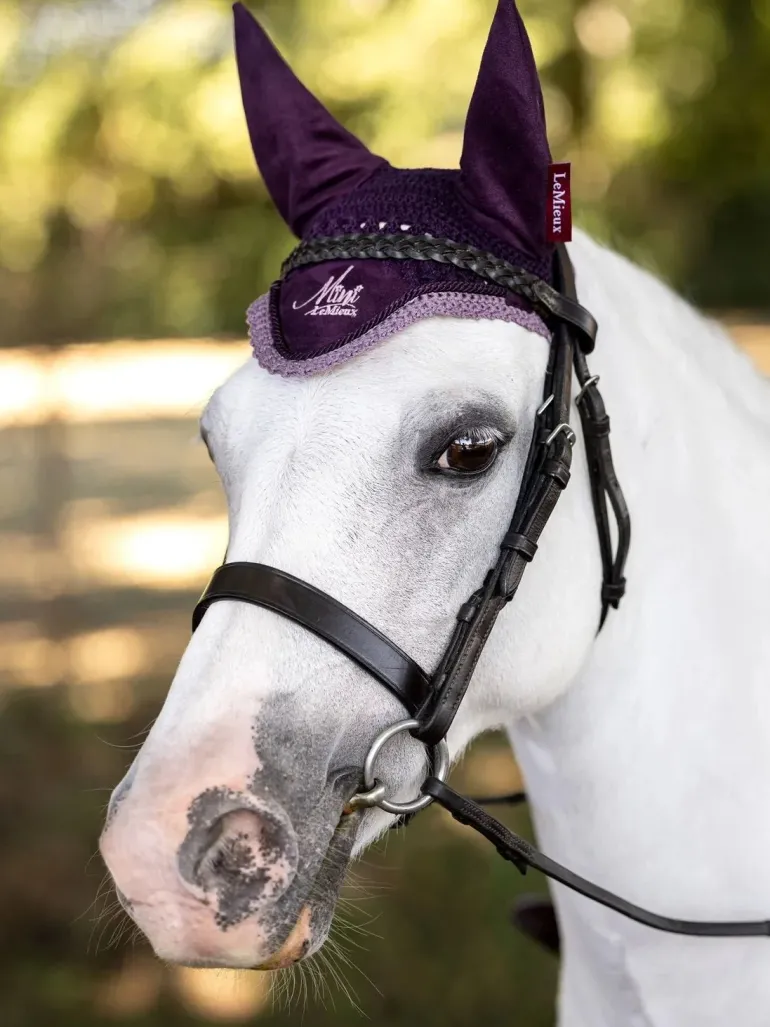 At last a premium designer collection for Kids! Mini LeMieux is intended to appeal to the under twelves with an eye for style. Designed particularly for 11.2hh to 13hh ponies, the Mini LeMieux Fly Hood is hand made from two styles of close-knit crochet with comfortable high-density fabric ears that soften sound. Suede embroidered detailing and colour matched braid complete the range.