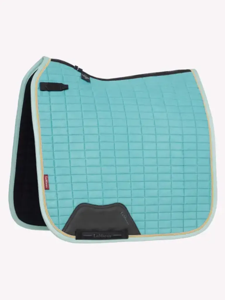 Our classic Dressage Square is updated with a new athletic block quilting pattern with contrast piping for optimum streamlined cushioning.