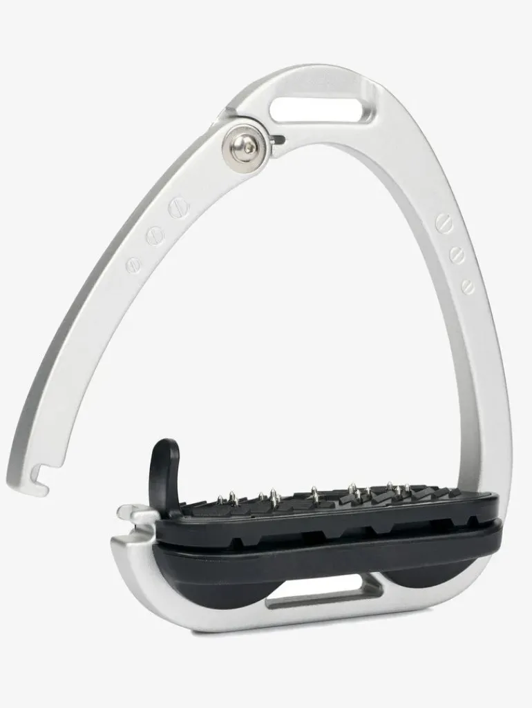 The footplate is supported by a twin balance arch system that distributes the weight evenly across the base of the stirrup frame. The apex of the frame is recessed and off-set, encouraging a 45 ¼ outward orientation which makes it easier for the rider to locate the optimum angle for the foot and regain a lost stirrup.