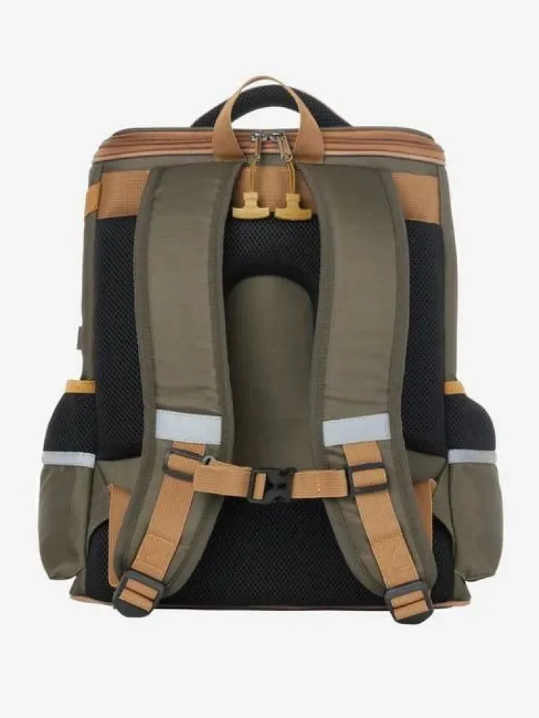 Padded ergonomic shoulder straps and a grab handle make this rucksack easy and comfortable to carry. Stains simply wipe off the durable wipe-clean outer, while reflective strip details shine bright in the night for added visibility.