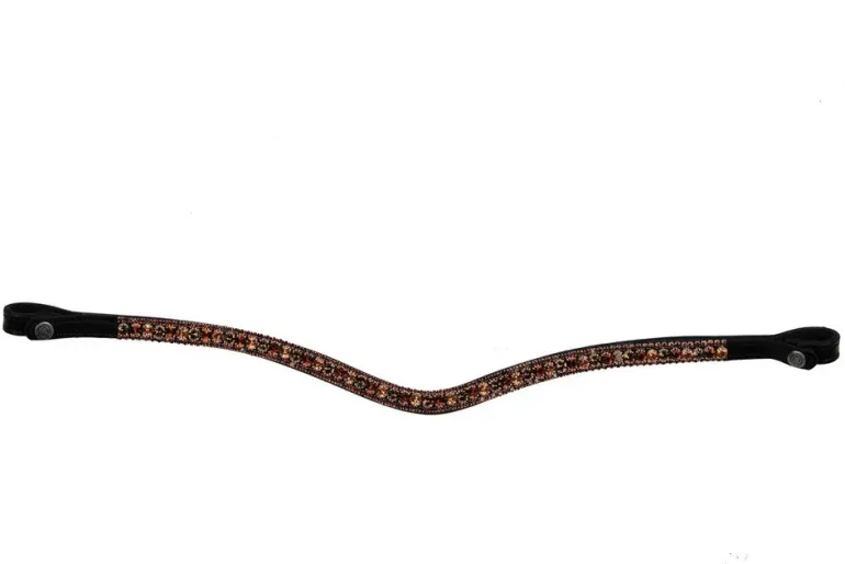 Make your horse shine with this curved Dlux browband with three rows of sparkly grey rhinestones. The browband is equipped with snap buttons with a Montar logo. The browband is available in black leather.