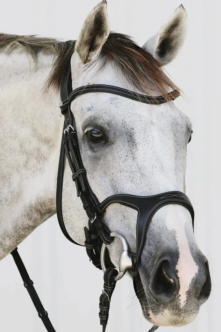 The Monarch noseband is designed to avoid pressure on the sensitive mouth and jaw area of the horse. Soft curves make space for the facial nerves and the big back teeth, while the softly padded cushion protects the jaw bone.