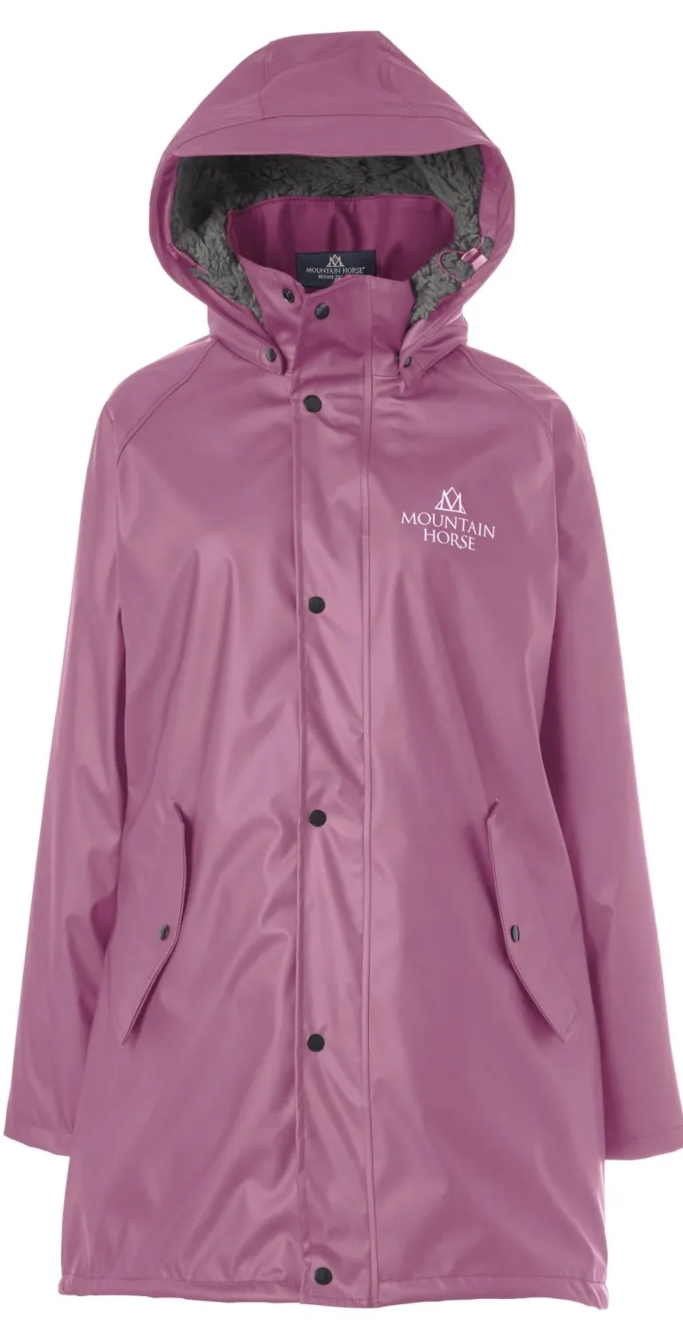 This child’s raincoat is fully waterproof, with welded seams and a cozy, soft pile fabric lining. It features large front pockets, a riding slit at the back, and reflective details for added visibility.