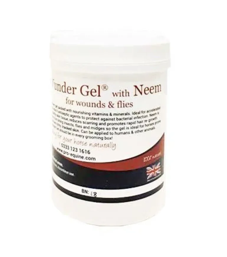 One of our best selling horse skincare products! Wunder Gel with neem is first aid in a tub with so many uses! A multi-purpose Aloe Vera and Neem gel packed with nourishing vitamins & minerals for minor wound care and problem skin issues.