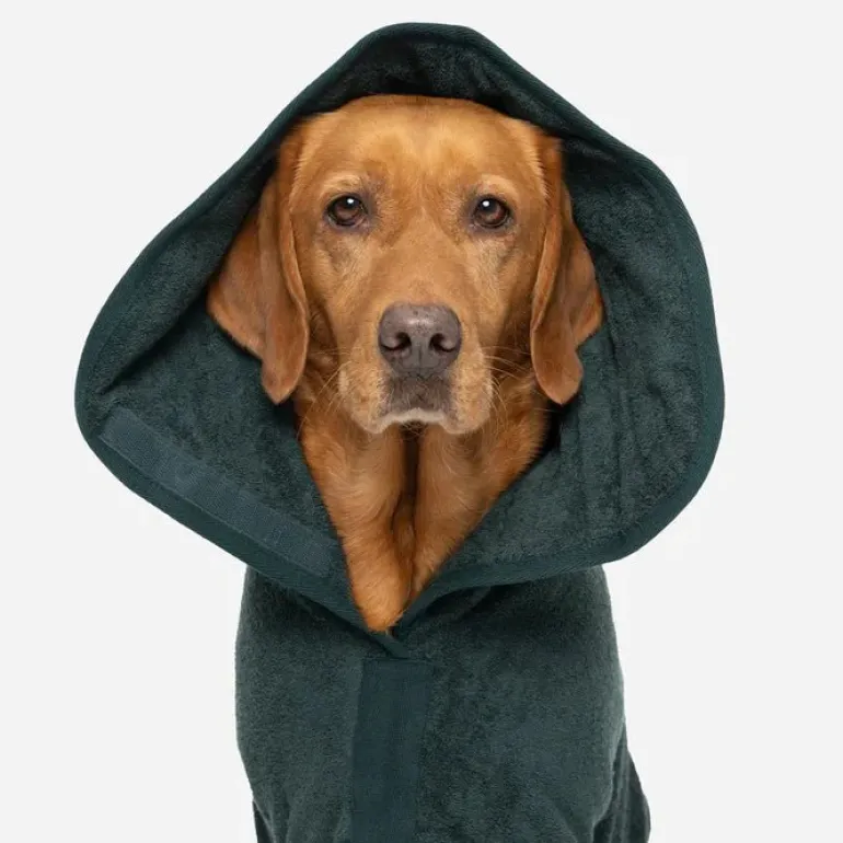 Two layers of absorbent towelling wick away wet from your dog, and the soft cotton is comfortable and cosy for them to wear. No shivering in the back of the car, no wet dog smells, and no endless rubbing down.