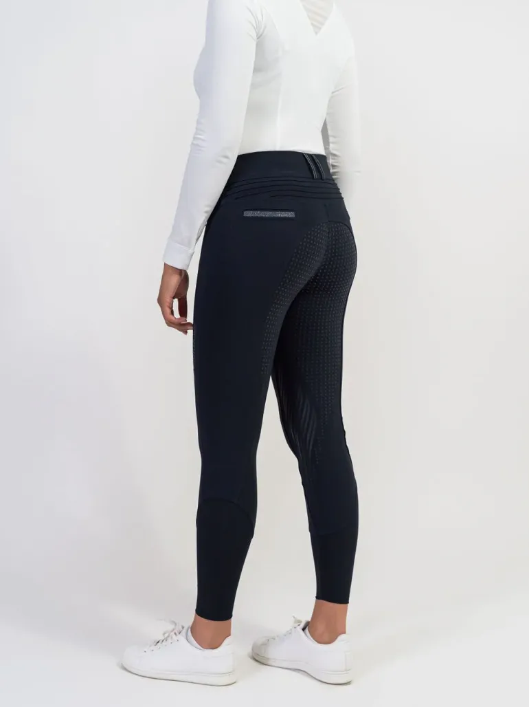 A flattering high-waist fit guarantees optimal riding comfort, while technical fabric ensures breathability, flexibility, and moisture wicking. Embellished back pockets add a touch of style, while the signature grip system improves stability. Streamlined seams complete the look.