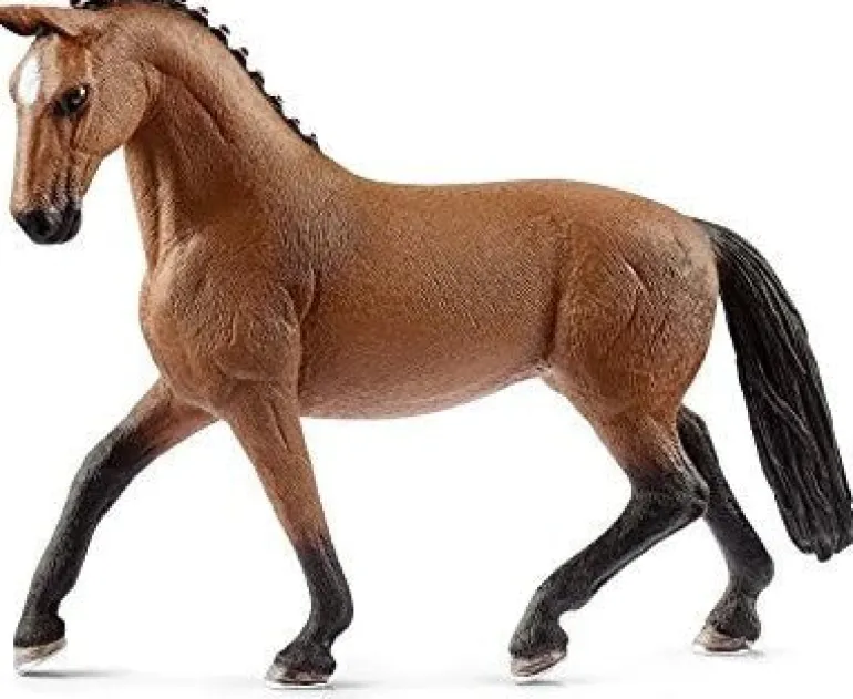 The Hanoverian Mare, Bay from schleich® HORSE CLUB has an elegantly braided mane and white star.