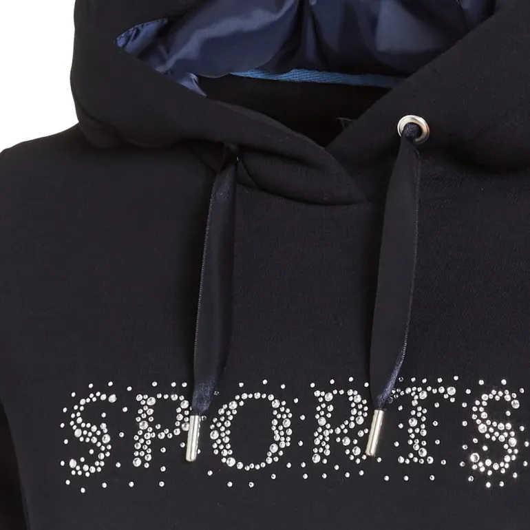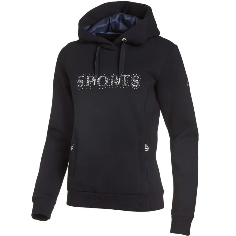 The Schockemohle Calida Style Ladies. Hoodie is one of this season’s must-have items! Crafted from a soft cotton-mix fabric, it has a beautifully tailored and flattering shape, with just the right amount for stretch for comfort and freedom to move. An eye-catching rhinestone ‘Sports’ design across the chest boasts quality and style, while the satin hood cords add a touch of luxury.