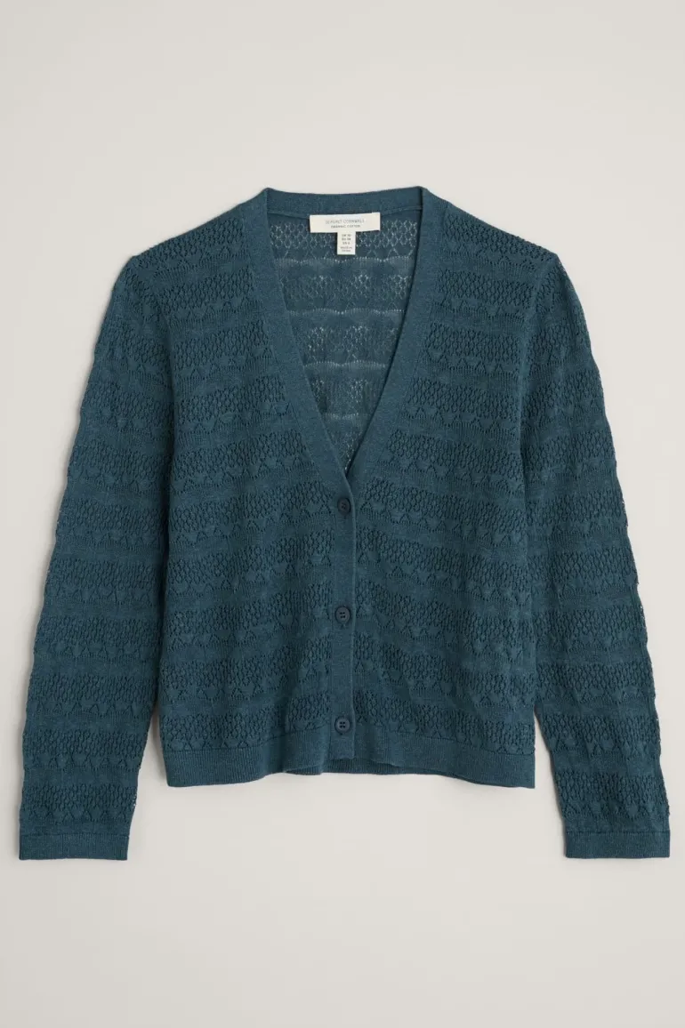 Knitted from soft, breathable organic cotton, with a gently textured pointelle stitch, this is the perfect throw-on style for summer days exploring or easy evenings with friends. The semi-fitted shape falls to the hip, a versatile length we love with tea dresses or a casual T-shirt and jeans.