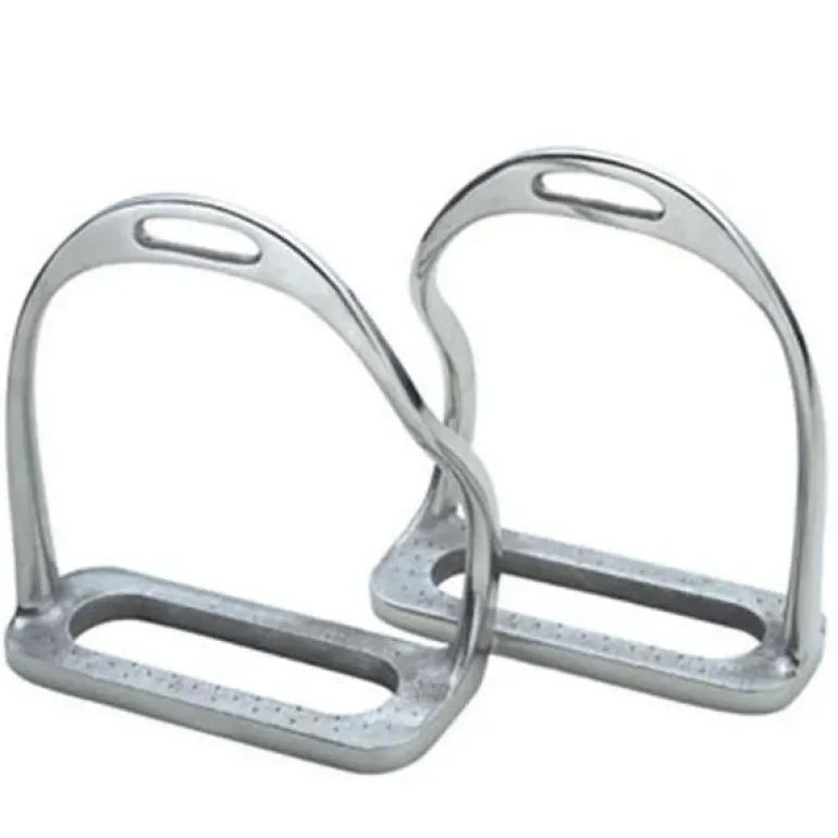 Shaped Stirrup Irons Otherwise known as the Australian simplex, these Shires Bent Leg Stirrup Irons have been designed to help prevent the foot becoming caught in the stirrup in the event of a fall. Note: irons should be chosen according to foot size, 1.25cm of space either side of riding footwear is correct. Size Guide Available in 6 sizes.