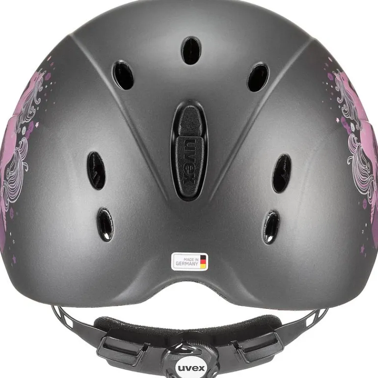 Safe, light as a feather and well ventilated – these are the requirements for a junior riding helmet. Whether for practising the first jumps on the course or for cross-country hacking, the uvex onyxx masters every terrain. Equipped with the 3D IAS system, the helmet adjusts perfectly in height and width to fit the shape of the head and grows with the rider’s head size from 49 cm to 54 cm. Thanks to Fast Adapting System and the Monomatic lock with its single-handed operation, the in mould helmet sits firmly on the head in every situation. This not only increases comfort for the wear but also guarantees optimum protection in the event of an accident.