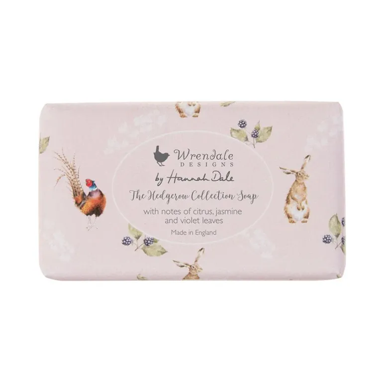 This beautifully wrapped soap bar in the ‘Hedgerow’ fragrance, with notes of citrus, jasmine and violet leaves would a great gift. 190g bar of soap with textured paper wrap. Measures 105 mm x 57mm x 35mm. Paraben & SLS free. Vegan friendly. Made in the UK.