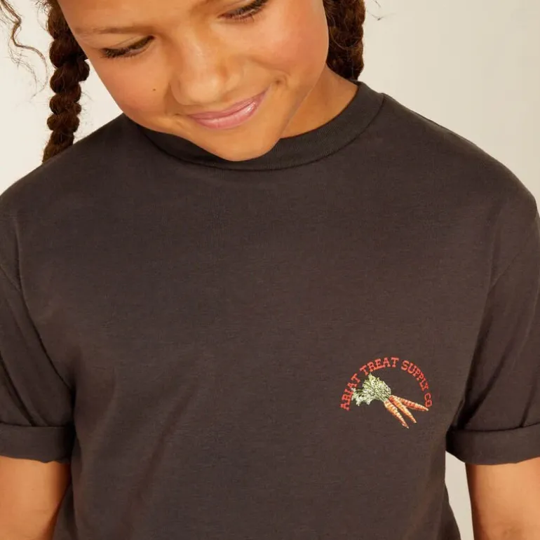 Ariat is renowned for its commitment to quality and performance, ensuring that every piece of clothing meets the needs of active children. With the Ariat Kids Treat Supply T-Shirt SS25, you’re not just getting a t-shirt; you’re investing in a versatile and stylish addition to your child’s wardrobe that celebrates her passion for horse riding.