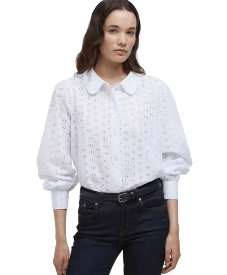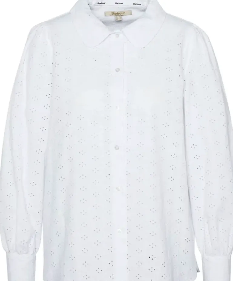 This broderie women’s Barbour Arlo Shirt combines style and comfort effortlessly. It features a charming rounded Peter Pan collar and elegant balloon sleeves, adding a touch of femininity to your look. The lightweight fabric is perfect for warm days, making it a great choice for both casual outings and special occasions. The delicate broderie design adds a lovely texture, elevating the overall style. Pair it with jeans or a skirt for a fresh, stylish outfit. With its easygoing fit and beautiful details, this shirt is a must-have for your wardrobe, perfect for adding a playful yet sophisticated touch to any outfit.