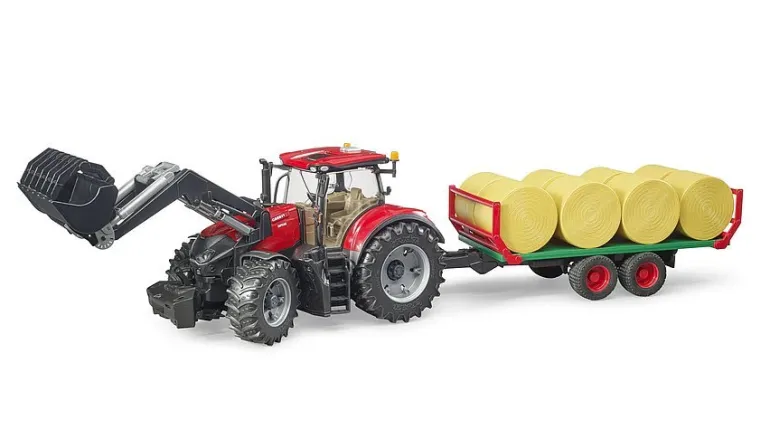 Fall’s the season when farmers gotta rustle up all those hay bales! BRUDER’s come up with a unique vehicle combo to help out. The Optum series packs maximum power and performance into a tidy package – and its looks ain’t half bad either! It’s 1:16 scale and a real performer. The cab’s got tinted windows and easy-opening doors. There’s a fold-away hood for access to the engine and a frontloader that add fun. Its adjustable rear coupling hooks up with all BRUDER’s trailers, and don’t forget those nifty, detachable wheels. For serious bale-hauling, you want the BRUDER bale transport trailer. It’s got folding side rails and can carry 8 round bales. To get the most out of it, add the farmer figure set (#62610) for more quality playtime!