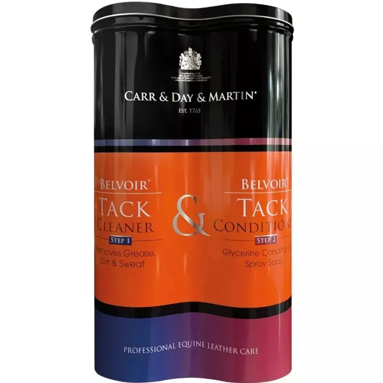 Carr and Day and Martin Belvoir Leather Care Duo Tin SetSeason:Core Brand:Carr and Day and Martin Code:CDMLC055The Carr & Day & Martin Belvoir Leather Care Duo is a fantastic way to revitalise and protect your tack. With regular use of this powerful 2 step combination, comes peace of mind that leather will remain healthy, safe and long-lasting.