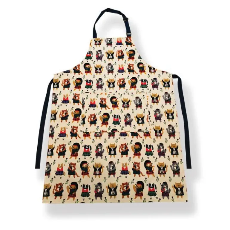 This fun and quirky Apron is filled with Cats wearing Kilts and playing the ‘Bag Pipes’.