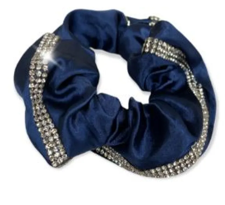 Beautiful plush satin hair scrunchie with beautiful crystal embellished. Perfect for dressage and equestrian events. Elasticated one size fits all. 100% polyester + trims