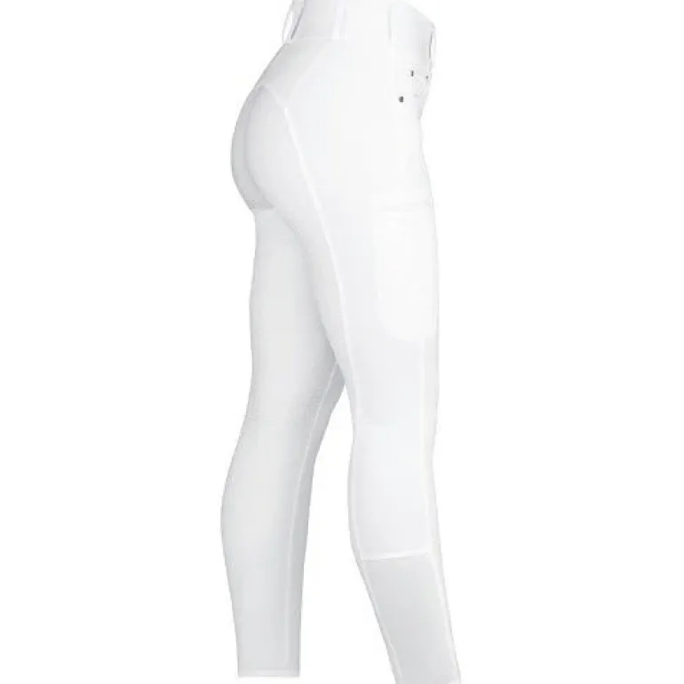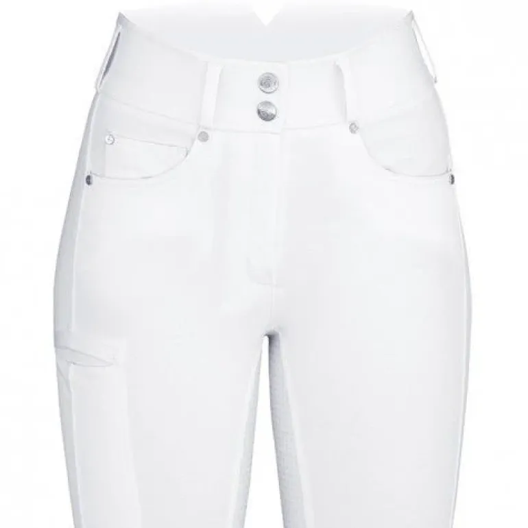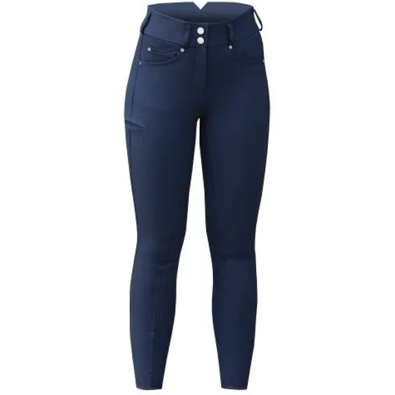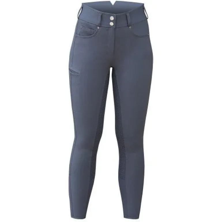 Ultimate stretch high waist breeches, design for training and competing! These breeches incorporate a useful subtle phone pocket to the right thigh as worn, with careful seam positioning to the garment for ultimate comfort in and out of the saddle. Other features include hidden support to the high waist, jean style front pockets, Equetech jean style rivets, subtle matt silicone grip to seat, zip and fly to front, belt loops and Lycra panel to hem.