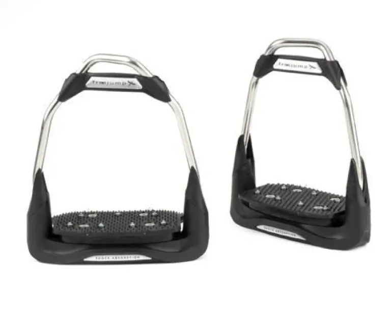 The Freejump AIR’S Stirrups set a new standard in the world of traditional stirrups. Made of stainless steel, with a floor mounted on Air Cushion, the AIR’S stirrup comes with a complete customisation of the technical choices: eye orientation and/or inclination of the floor. The upper polyamide headband is designed to trigger in case of high pressure to facilitate the release of the foot if necessary. The colours of the stickers, the floor and the elastomer are customizable for a unique look.