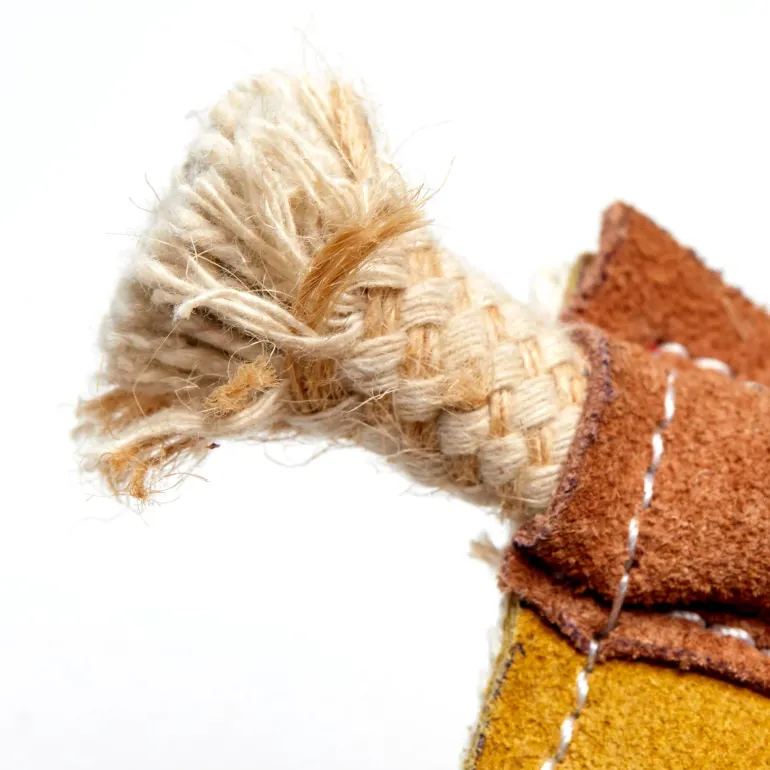 Jute is a natural, sustainable plant fibre. The suede is a by-product and ensures that this material is not wasted. Tough and long lasting, made without using any compound that would harm or be released when chewed. Jute is 100% biodegradable.Â