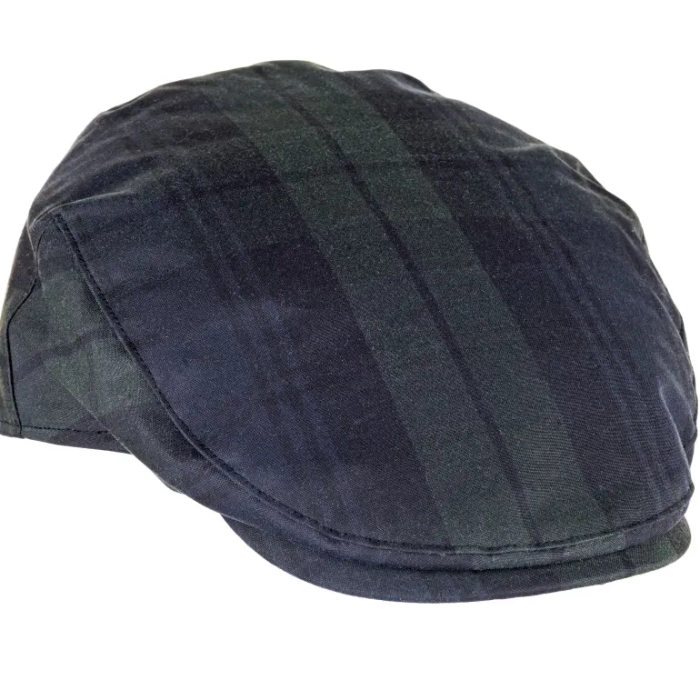 Stunning showerproof wax flat cap in tartan design. Complimented by check linings.