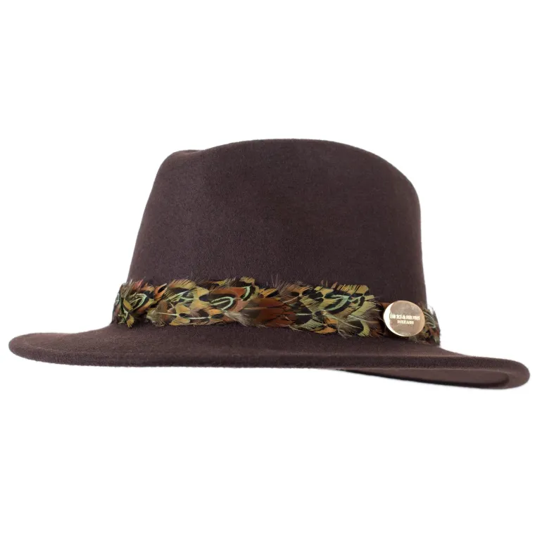 This striking wool felt Suffolk Fedora is carefully hand finished with a classic pheasant feather wrap. The perfect design to take you from the scenic countryside to the bustling city life.